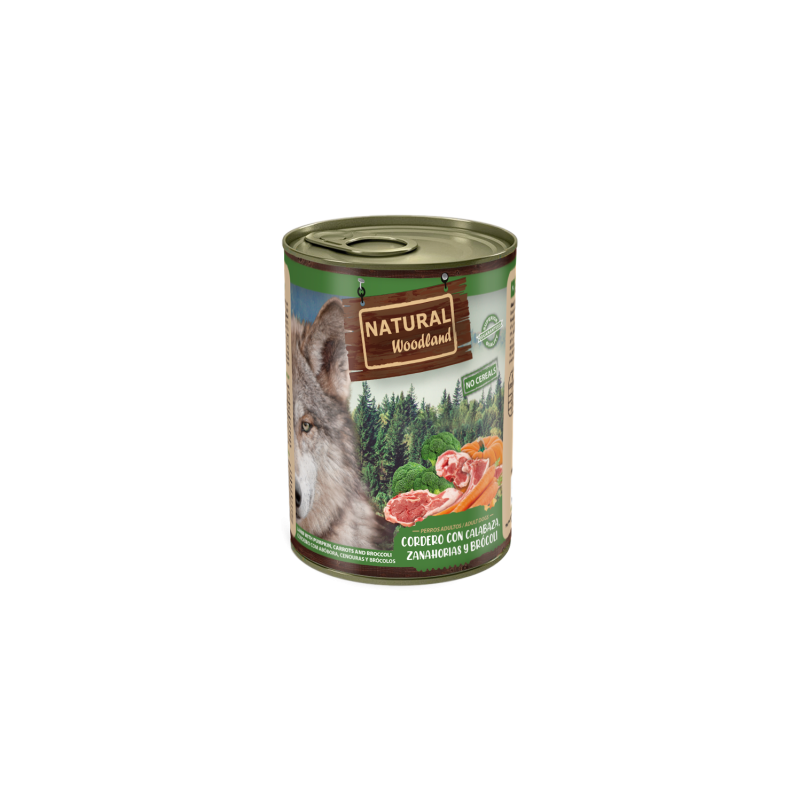 El alimento húmedo completo de NATURAL WOODLAND para perros posee una elevada palatabilidad gracias a su alto contenido en carnes frescas y a sus ingredientes naturales de gran calidad . Este alimento a sido formulado SIN CEREALES , SIN GLUTEN , SIN LACTOSA , SIN COLORANTES , SIN SABORIZANTES Y SIN CONSERVANTES ARTIFICIALES .