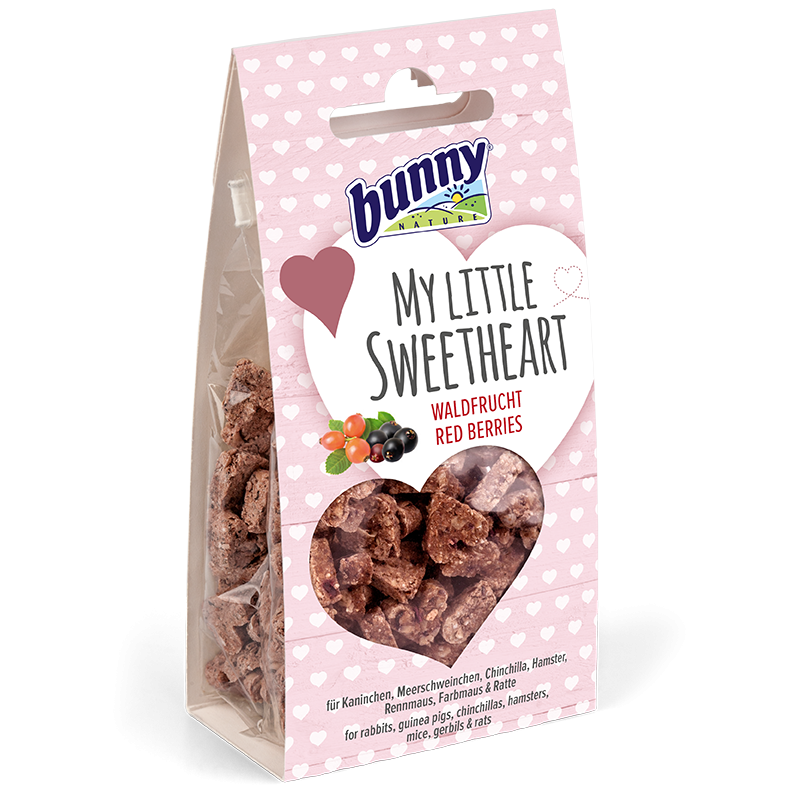 El snack de Bunny nature, My little sweetheart con frutas del bosque, son unas deliciosas galletas para conejos, cobayas, chinchillas, hamsteres, jerbos, ratones, ratas y otras pequeñas mascotas,