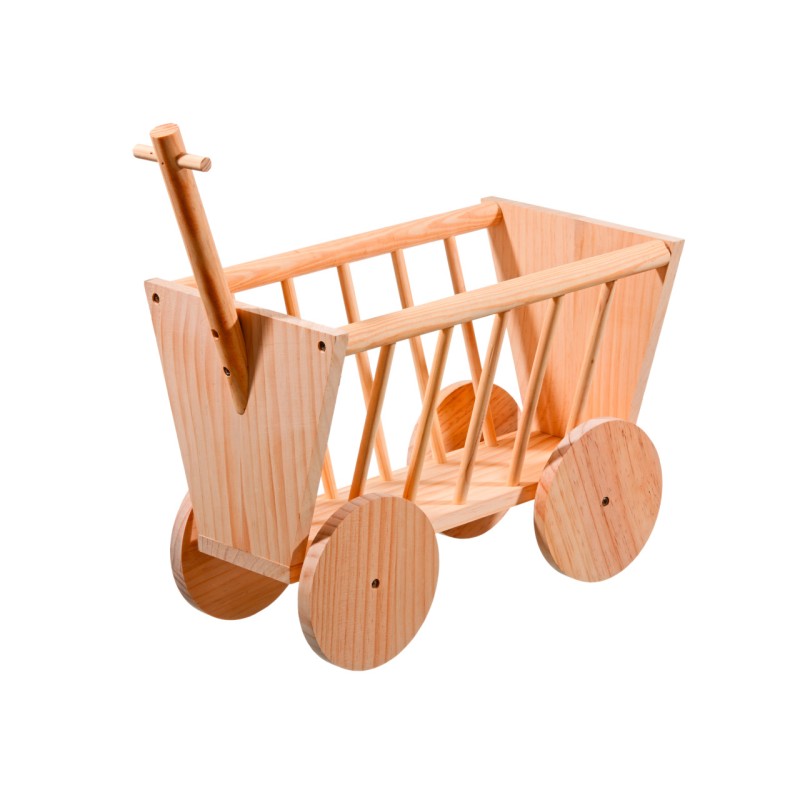 Este divertido pesebre para heno en forma de carretilla de mano es un buen accesorio para los animales pequeños y sus dueños. La carretilla de mano de madera natural está disponible en dos tamaños diferentes.