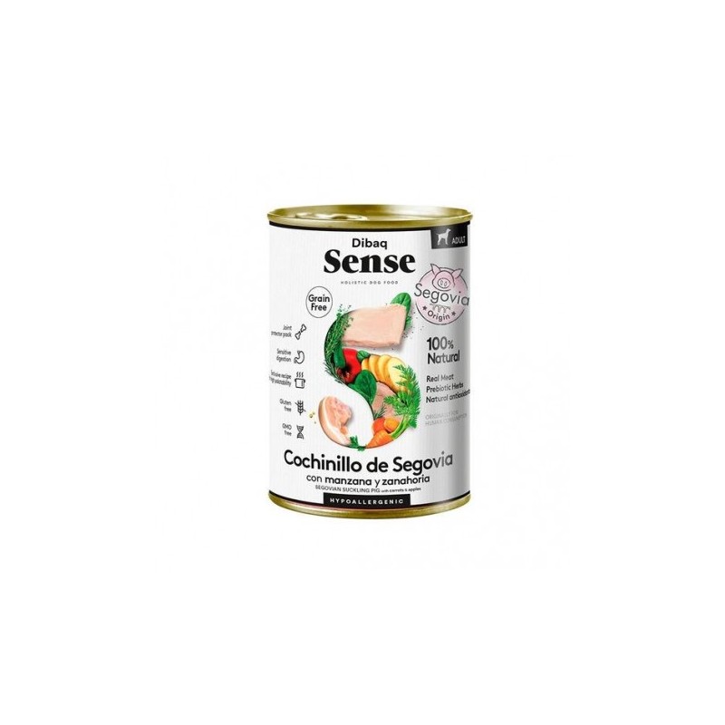 Lata de comida húmeda con sabor muy especial, Cochinillo de Segovia. Esta lata es hipoalergénica y monoproteica, ideal para perros adultos con digestión sensible. Comida húmeda grain free compuesta por carnes frescas de Cochinillo de Segovia, frutas y verduras frescas.