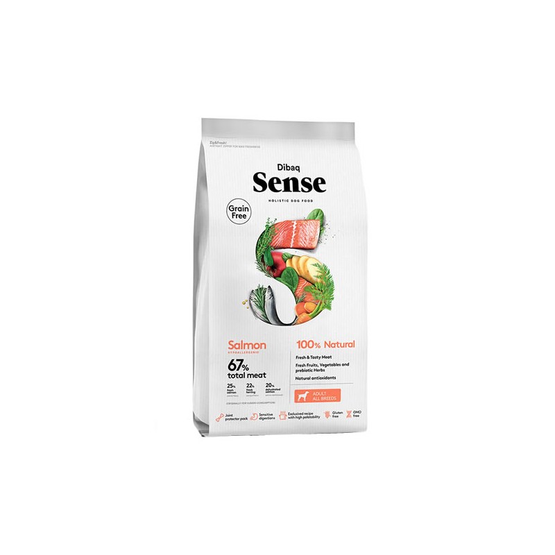 Salmón fresco 25%, arenque fresco 22%, salmón deshidratado 20%, patata, guisantes pelados, aceite de pollo, pulpa de remolacha, zooplacton marino deshidratado, hidrolizado de salmón, verduras y frutas frescas 4% (espinacas, zanahorias, manzana), ceratonia siliqua, aceite de salmón (fuente de ácidos grasos omega 3 y 6), sustancias minerales, condroitina sulfato, glucosamina, MSM, yuca, raíz de achicoria (fuente de inulina-FOS), levaduras (MOS) y plantas aromáticas (romero, tomillo y orégano).