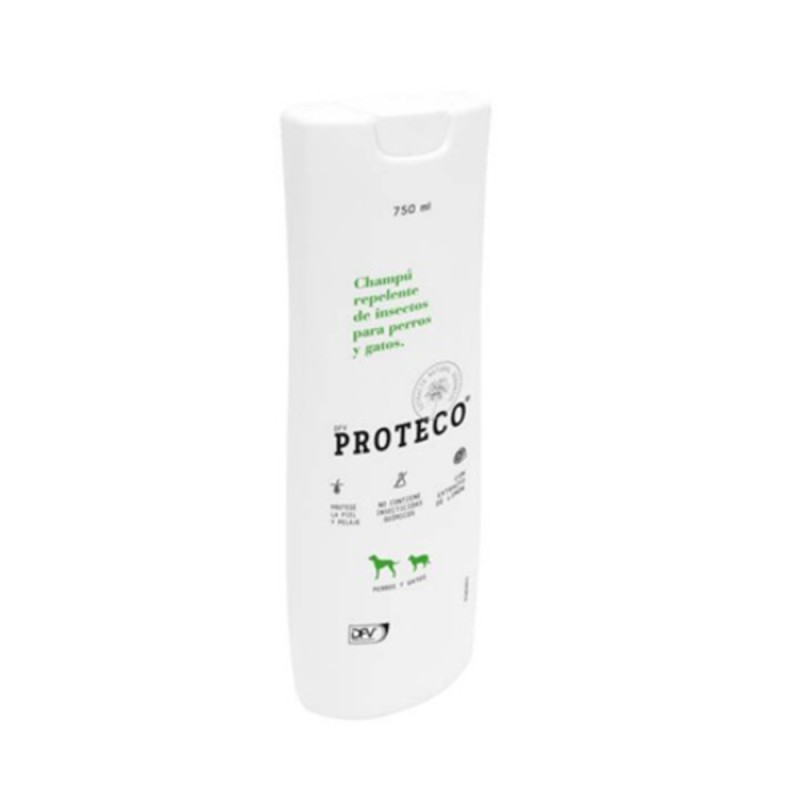 El champú repelente DFV PROTECO® para perros y gatos, contiene ingredientes naturales que protegen al animal contra infestaciones provocadas por parásitos externos. Estas sustancias naturales tienen un elevado efecto repelente contra insectos y garrapatas, mientras protegen la piel y el pelaje de la mascota. También incorpora extracto de limón. No contiene insecticidas químicos.