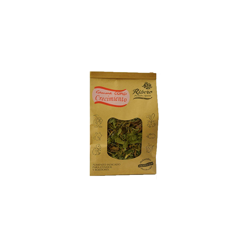 Está indicada para conejos y roedores, en etapas de crecimiento, estados gestantes, lactantes o convalecientes. Envase de 100 gramos presentado en bolsa 100% biodegradable.