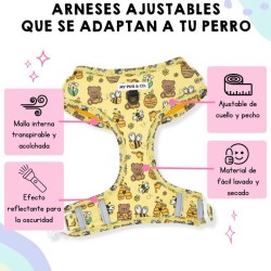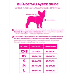 • Arnés ajustable tanto en el cuello como en el pecho, ajustándose de forma cómoda a perros de todos los tamaños.