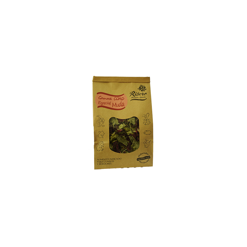 Alimento complementario compuesto por heno de Festuca y Avena y una mezcla de plantas 100% naturales que favorecen el proceso de muda como Hibisco, Flor de Arnica, Flor de Lúpulo, Grosella Negra, Trigo Verde, entre otras.