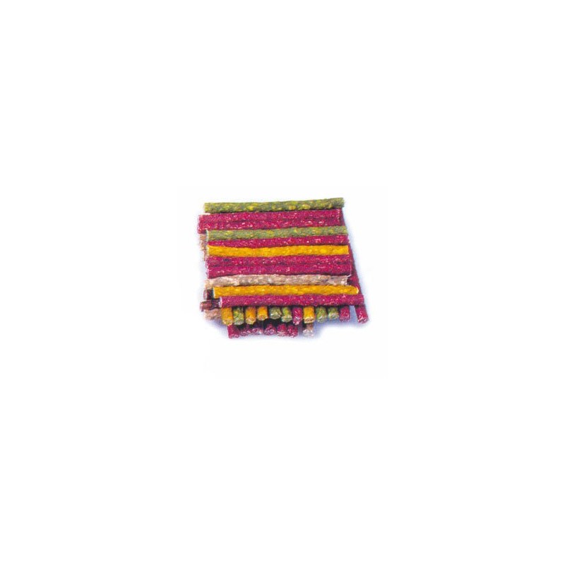 Ingredientes : piel de vacuno 96,98% , Harina de tapioca 3% . Contiene aditivos colorantes .