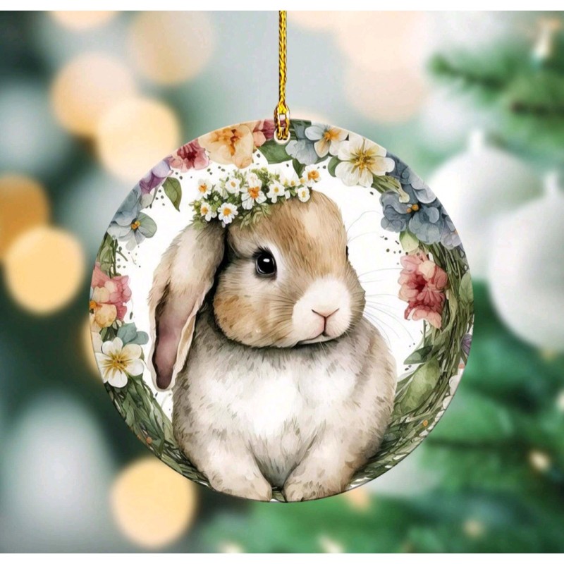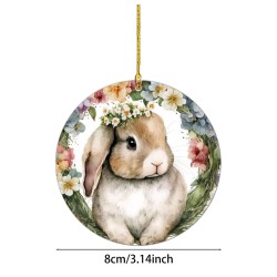 Colgante plano acrílico redondo ideal para decoración con diseño de conejito.