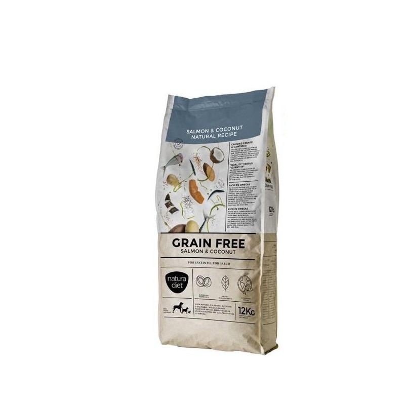 Composición: Salmón, jurel, boquerón y caballa enteros al vapor (22 %) *, patata entera (20%), aceite de coco (7%) *, guisantes verdes, *, manzana*, copos de patata, levadura de cerveza, almidón de patata, aceite de canola, boniato (3%), lentejas rojas (3%) *, aceite de salmón*. PROHEALTH (1%): zanahoria deshidratada, extracto de semillas de diente de león*, extracto de semillas de té verde*, manzanilla deshidratada, extracto de semillas de orégano*, probióticos*, tomate deshidratado, pétalos de rosa, alga espirulina*, brócoli deshidratado* ( fuente de prebióticos), arándano deshidratado*, pomelo deshidratado, levadura de cerveza, PROJOINT COMPLEX (0.2%): extracto de mejillón de labios verdes, extracto de krill*, caldo de hueso* (fuentes naturales de colágeno, condroitina y glucosamina), PROSAFE COMPLEX (0.03%): romero*, cúrcuma*, pomelo, cereza de cayena y aceite de oliva*.