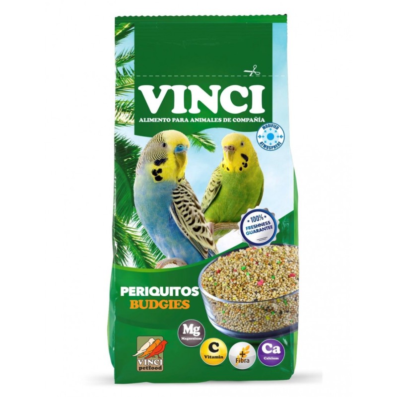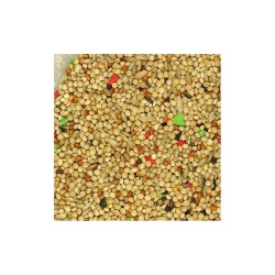 Mezcla equilibrada para pericos compuesto de : Mijo , semilla de alpiste , avena descascarada , productos de panadería y de fabricación de pastas alimenticias , semilla de Níger , semillas de colza , aceite mineral y aroma de plátano .