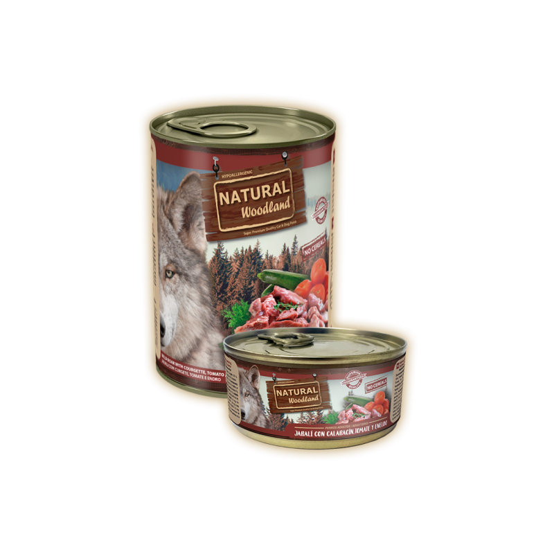 El alimento húmedo completo de NATURAL WOODLAND para perros posee una elevada palatabilidad gracias a su alto contenido en carnes frescas y a sus ingredientes naturales de gran calidad . Este alimento a sido formulado SIN CEREALES , SIN GLUTEN , SIN LACTOSA , SIN COLORANTES , SIN SABORIZANTES Y SIN CONSERVANTES ARTIFICIALES .
