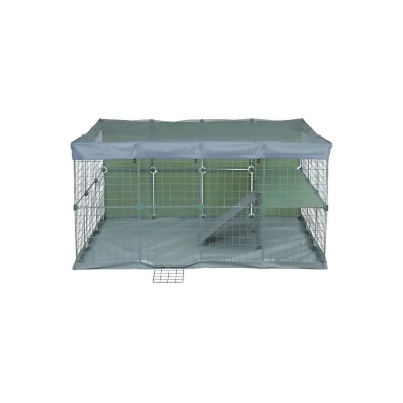 Zolux neopark conejos neolife es un parque para conejos compuesto por 32 panales de 35x35 cm ( 11 panales ciegos + 21 rejillas . de las cuales una con puerta ) + clips + rampa con tejido de protección de color gris claro.
