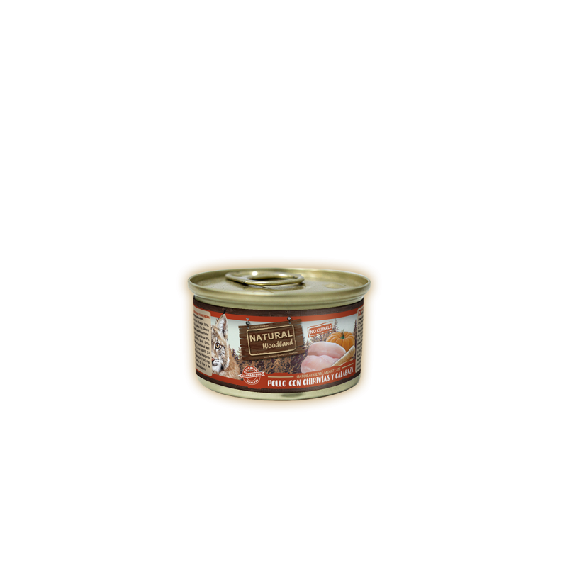 El alimento húmedo completo de natural woodland para gatos posee ese extra de hidratación que todo gato necesita para llevar una vida saludable. Además de su alta palatabilidad e increíble textura , estas dietas han sido formuladas SIN CEREALES , SIN GLUTEN , SIN LACTOSA , SIN COLORANTES , SIN SABORIZANTES Y SIN CONSERVANTES ARTIFICIALES.