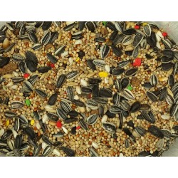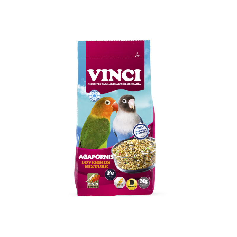 Mezcla equilibrada para agapornis compuesta de : Mijo , semilla de alpiste , avena descascarada , semilla de cártamo , cebada , semilla de cáñamo , semilla de Níger , semillas de lino , alforfón , productos de panadería y de fabricación de pastas alimenticias , trigo , semillas de girasol , aceite mineral y aroma de plátano . Aditivos: colorantes.