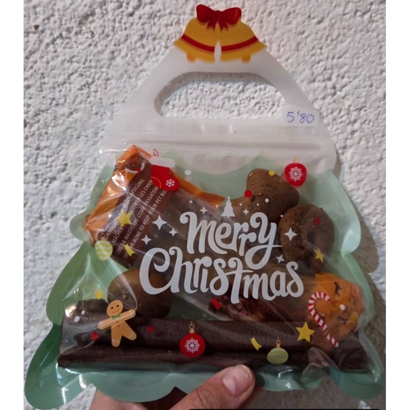Bolsita navideña para perro con snack 100% naturales y funcionales.